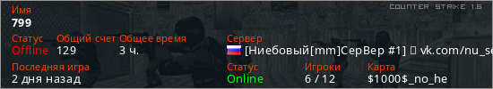 Последний раз был в сети Вчера Игрок с таким ником замечен на 10 серверах