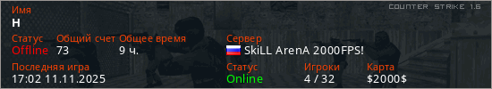 Последний раз был в сети 17:02 11.11.2025 Игрок с таким ником замечен на 41 сервере