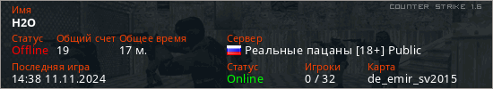 Последний раз был в сети 14:38 11.11.2024 Игрок с таким ником замечен на 24 серверах