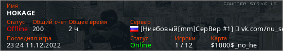 Последний раз был в сети 23:24 11.12.2022 Игрок с таким ником замечен на 17 серверах