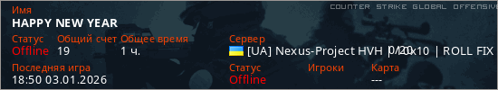 Играет на Counter Strike Global Offensive сервере. Страна: УкраинаПервый раз замечен 14:30 01.01.2026
