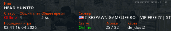 Играет на Counter Strike 1.6 сервере. Страна: СШАПервый раз замечен 02:22 16.04.2026