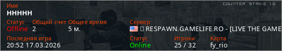 Играет на Counter Strike 1.6 сервере. Страна: СШАПервый раз замечен 20:35 17.03.2026