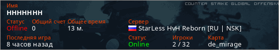 Играет на Counter Strike Global Offensive сервере. Страна: РоссияПервый раз замечен 08:59 16.12.2025