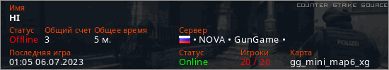Играет на Counter Strike Source сервере. Страна: РоссияПервый раз замечен 01:01 06.07.2023