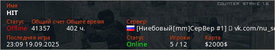 Играет на Counter Strike 1.6 сервере. Страна: РоссияПервый раз замечен 22:00 06.01.2021