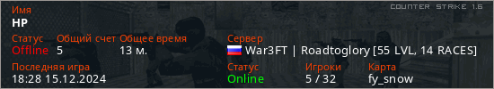 Играет на Counter Strike 1.6 сервере. Страна: РоссияПервый раз замечен 15:10 20.04.2024