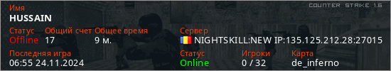 Играет на Counter Strike 1.6 сервере. Страна: РумынияПервый раз замечен 16:00 09.10.2024