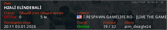 Играет на Counter Strike 1.6 сервере. Страна: СШАПервый раз замечен 20:09 03.01.2026