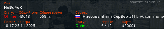 Последний раз был в сети 18:17 25.11.2025 Игрок с таким ником замечен на 10 серверах