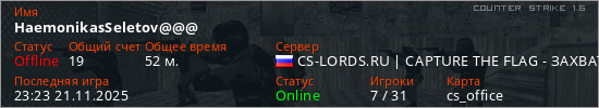 Общая информация игрока