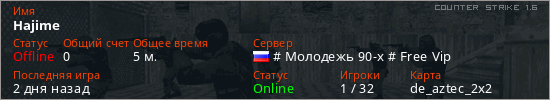 Играет на Counter Strike 1.6 сервере. Страна: РоссияПервый раз замечен 17:47 04.12.2025