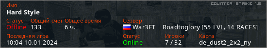Играет на Counter Strike 1.6 сервере. Страна: РоссияПервый раз замечен 13:14 25.08.2023