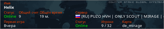 Играет на Counter Strike Global Offensive сервере. Страна: РоссияПервый раз замечен 10:27 17.03.2026