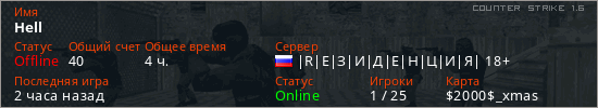 Играет на Counter Strike 1.6 сервере. Страна: РоссияПервый раз замечен 13:19 29.11.2025