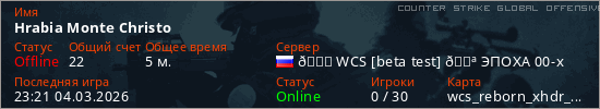 Играет на Counter Strike Global Offensive сервере. Страна: РоссияПервый раз замечен 23:19 04.03.2026
