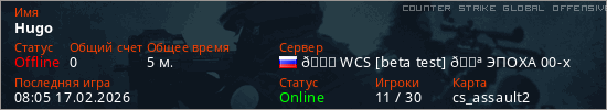 Играет на Counter Strike Global Offensive сервере. Страна: РоссияПервый раз замечен 08:01 17.02.2026