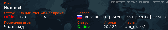 Играет на Counter Strike Global Offensive сервере. Страна: РоссияПервый раз замечен 16:57 06.04.2026