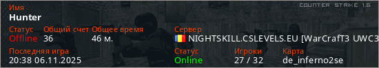 Последний раз был в сети 20:38 06.11.2025 Игрок с таким ником замечен на 47 серверах