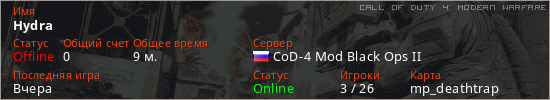 Играет на Call of Duty 4: Modern Warfare сервере. Страна: РоссияПервый раз замечен 12:40 23.12.2025