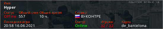Играет на Counter Strike 1.6 сервере. Страна: РоссияПервый раз замечен 03:48 24.03.2020