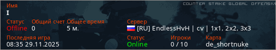 Играет на Counter Strike Global Offensive сервере. Страна: РоссияПервый раз замечен 08:10 29.11.2025