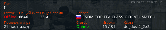 Играет на Counter Strike 1.6 сервере. Страна: РоссияПервый раз замечен 12:18 03.11.2021