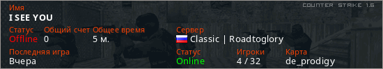 Последний раз был в сети Вчера Игрок с таким ником замечен на 6 серверах