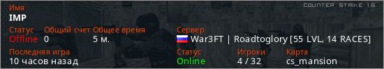 Последний раз был в сети 8 часов назад Игрок с таким ником замечен на 8 серверах