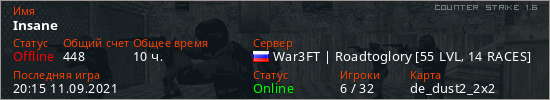 Последний раз был в сети 20:15 11.09.2021 Игрок с таким ником замечен на 17 серверах