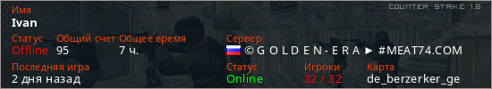 Последний раз был в сети Вчера Игрок с таким ником замечен на 51 сервере