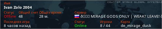 Играет на Counter Strike Global Offensive сервере. Страна: РоссияПервый раз замечен 13:21 07.03.2026