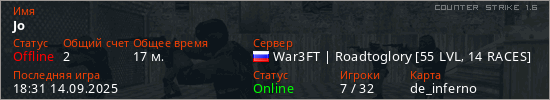 Последний раз был в сети 18:31 14.09.2025 Игрок с таким ником замечен на 23 серверах