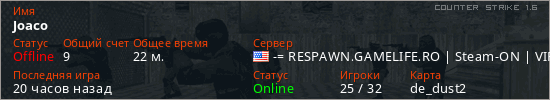 Играет на Counter Strike 1.6 сервере. Страна: СШАПервый раз замечен 21:12 06.07.2025