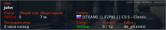Играет на Counter Strike Source сервере. Страна: РоссияПервый раз замечен 14:48 13.03.2026