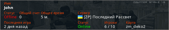 Играет на Counter Strike 1.6 сервере. Страна: УкраинаПервый раз замечен 22:42 14.03.2026