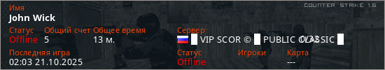 Играет на Counter Strike 1.6 сервере. Страна: РоссияПервый раз замечен 01:17 16.10.2025
