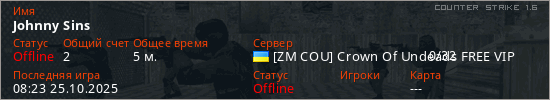 Играет на Counter Strike 1.6 сервере. Страна: УкраинаПервый раз замечен 08:17 25.10.2025