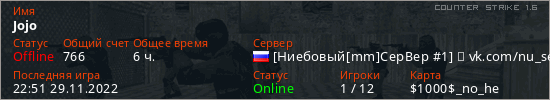 Играет на Counter Strike 1.6 сервере. Страна: РоссияПервый раз замечен 13:08 02.11.2021