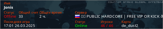 Играет на Counter Strike Global Offensive сервере. Страна: РоссияПервый раз замечен 16:45 26.03.2025