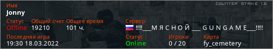 Последний раз был в сети 19:30 18.03.2022 Игрок с таким ником замечен на 22 серверах