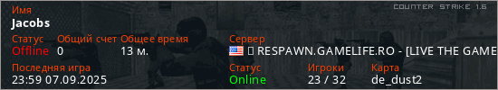 Играет на Counter Strike 1.6 сервере. Страна: СШАПервый раз замечен 00:45 07.09.2025
