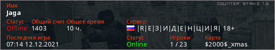 Играет на Counter Strike 1.6 сервере. Страна: РоссияПервый раз замечен 06:48 04.12.2021