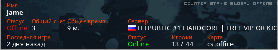 Играет на Counter Strike Global Offensive сервере. Страна: РоссияПервый раз замечен 17:18 04.03.2026