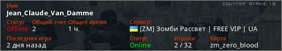 Играет на Counter Strike 1.6 сервере. Страна: УкраинаПервый раз замечен 10:21 18.03.2026