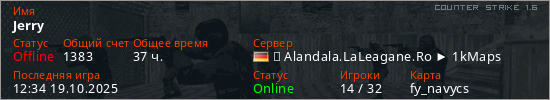 Последний раз был в сети 12:34 19.10.2025 Игрок с таким ником замечен на 28 серверах