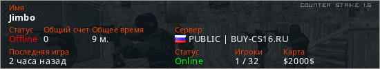 Последний раз был в сети 34 минуты назад Игрок с таким ником замечен на 16 серверах