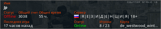 Играет на Counter Strike 1.6 сервере. Страна: РоссияПервый раз замечен 16:47 07.06.2024