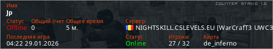 Играет на Counter Strike 1.6 сервере. Страна: РумынияПервый раз замечен 04:19 29.01.2026