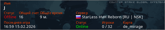 Играет на Counter Strike Global Offensive сервере. Страна: РоссияПервый раз замечен 15:29 15.02.2026